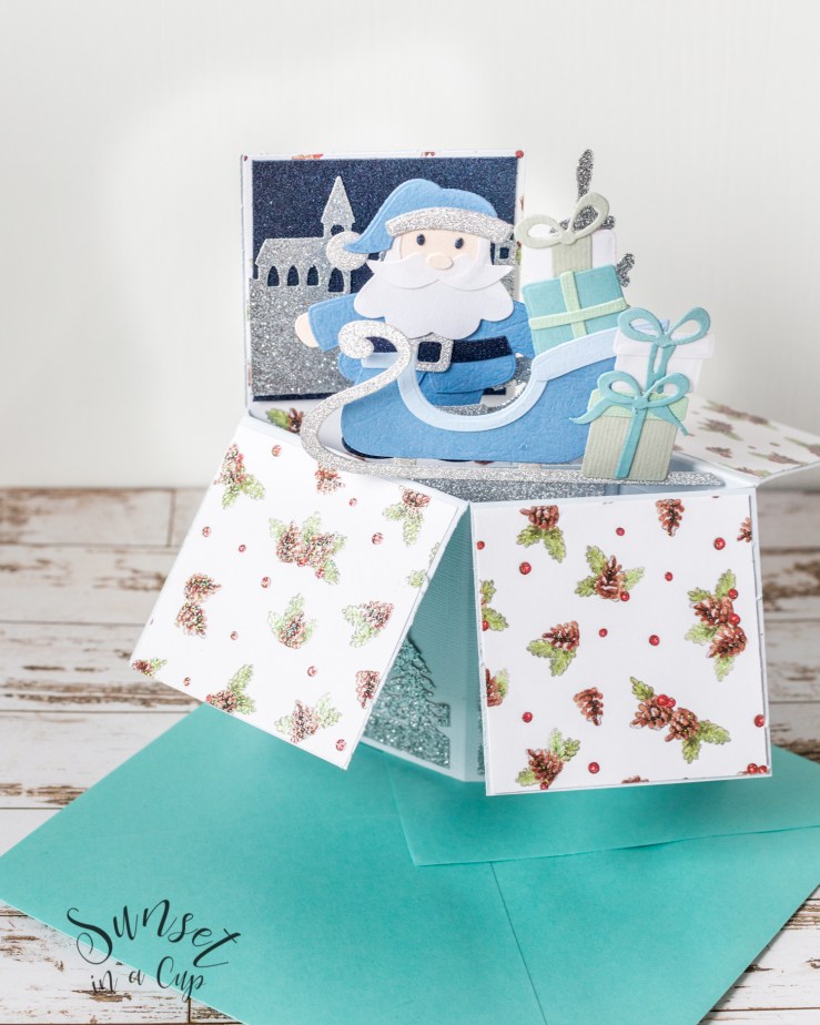 Quest’anno è stata la volta delle card in a box. Le trovo una splendida via di mezzo tra i biglietti di auguri tradizionali e le explosion box: meno impegnative di queste ultime, ma ugualmente portatrici di effetto sorpresa. Quando sono chiuse, sono completamente piatte come un classico biglietto di auguri; quando vengono aperte, diventano una piccola scatolina da cui spuntano le decorazioni a tema! Sono perfette per ogni occasione, e vi assicuro che non mancano mai di stupire e di divertire!